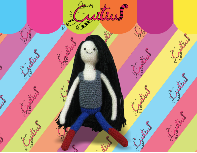 Otra serie que me inspira mucho es Adventure Time u Hora de Aventura, de esta serie ya he tejido 3 de sus personajes a Finn el humano, Jake el perro y Marceline la princesa vampiro y espero tejer a todos los personajes principales.